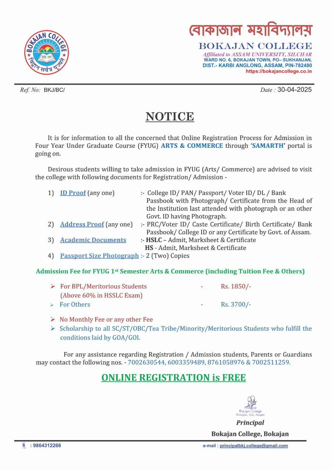 •   Notice Regarding Samarth Online Registration for Admission in FYUG 1st Semester (Arts & Commerce)  Click Here